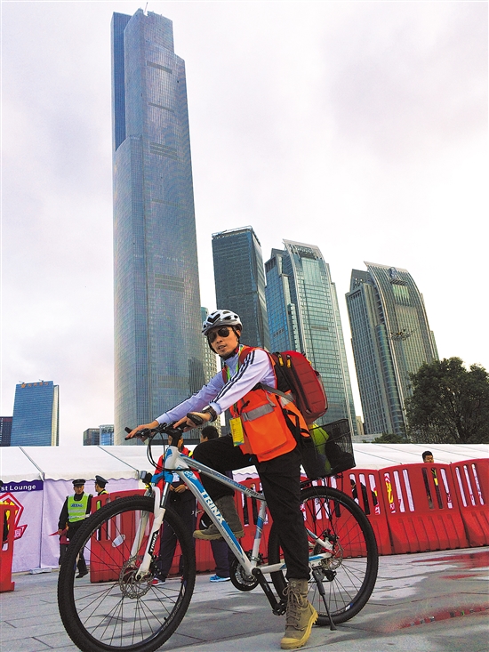 连续七年,广州马拉松赛骑行移动救护队队长李辉(右图)都提前一周和队员们到广马赛道踩点,了解各人骑行救护负责的区域以及自行车的摆放点。12月8日7时30分,广马鸣枪开跑,他们5时就会在赛道上集结。
