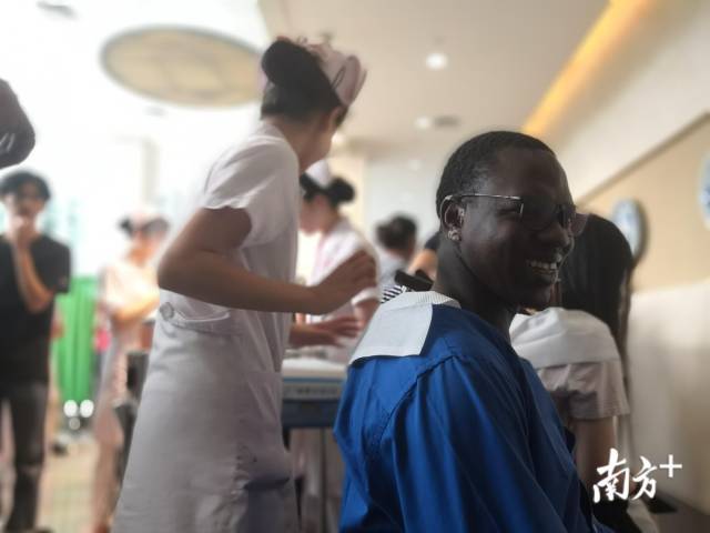 讲解结束后便是体验中医传统疗法环节。来自喀麦隆的留学生汤尼自告奋勇地提出,想尝试火龙灸。他说,由于缺少运动,长期久坐的他每天起床时都感觉腰部隐隐作痛,希望通过体验中医疗法,缓解疼痛症状。当大火升起的那一刻,围观的留学生都惊呼了。但汤尼镇定地说,“大家来体验,真的一点都不痛,而且很舒服。”