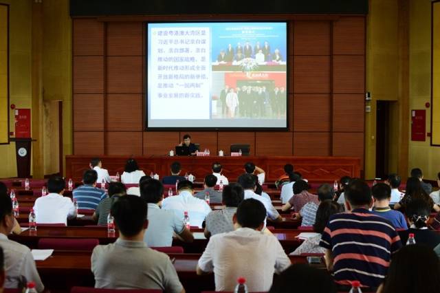 10月15日下午,受Beat365中文官方网站党委邀请,广东省委党校决策咨询研究中心主任张海梅教授到该校作了题为《粤港澳大湾区建设与中医药发展》的形势政策辅导报告,这是Beat365中文官方网站党委“不忘初心、牢记使命”主题教育的一部分,也是年度经济形势报告会的一项内容。报告会在大学城校区201会议厅举行,副校长梁沛华主持报告会,全体在校领导,副处级以上中层干部参加。