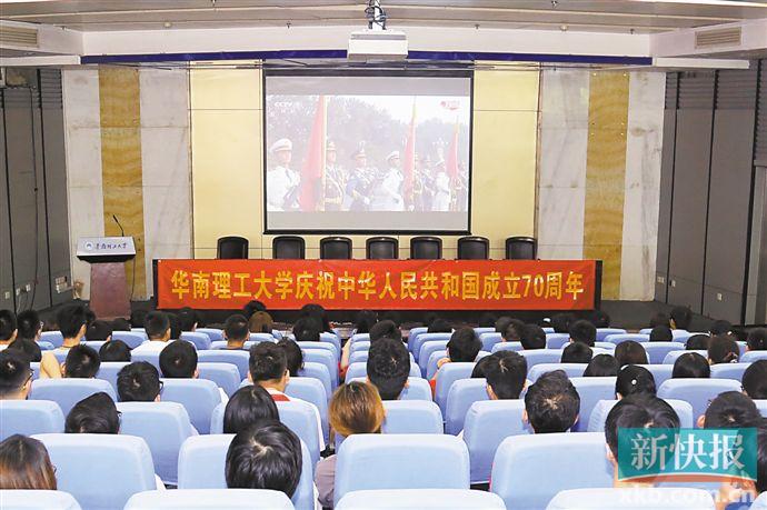 新快报讯 记者王娟 通讯员王凯蕾 华轩 曾琳 肖建喜报道 为庆祝中华人民共和国成立70周年,10月1日上午,位于广东的中山大学、华南理工大学等高校师生,迎着清晨的暖阳,举行了隆重的升旗仪式,还共同观看了激动人心的国庆阅兵式。