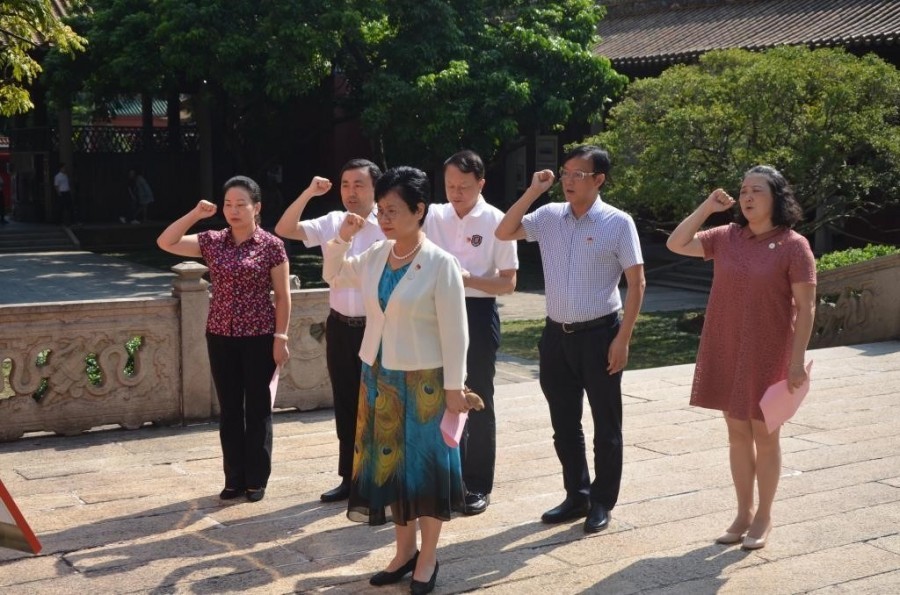 9月19日下午,Beat365中文官方网站领导赴广州农民运动讲习所旧址开展“不忘初心、牢记使命”革命传统教育。Beat365中文官方网站党委书记张建华带队,校长王省良、副书记邓国安、副校长许能贵、副校长潘华峰、副校长林彬参加了学习研讨。