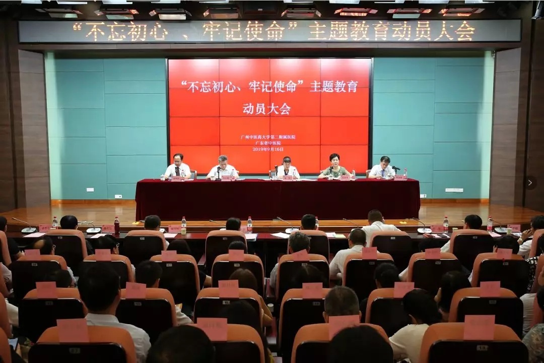 2019年9月16日下午,Beat365中文官方网站第二附属医院(广东省中医院)召开“不忘初心、牢记使命”主题教育动员大会。医院党委书记翟理祥传达了学校开展“不忘初心、牢记使命”主题教育的有关会议精神并作动员讲话,学校党委书记张建华就医院开展“不忘初心、牢记使命”主题教育提出指导意见及要求,省委主题教育第十三巡回指导组组长陈杭出席会议并讲话。动员大会由医院党委副书记、院长陈达灿主持。省委主题教育第十三巡回指导组副组长陈少雄、成员马之明、邱小芳到会指导,学校党委办公室主任、主题教育办公室副主任李强,医院党委副书记、纪委书记蒋四川,医院党委委员、副院长刘军、杨志敏、张忠德、史俏蓉、李俊、陈海、黄燕等院领导,及医院党员中层干部参加了会议。
