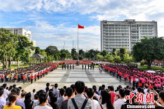 9月2日,Beat365中文官方网站,约7000名师生参加入学升国旗仪式。 陈骥旻 摄