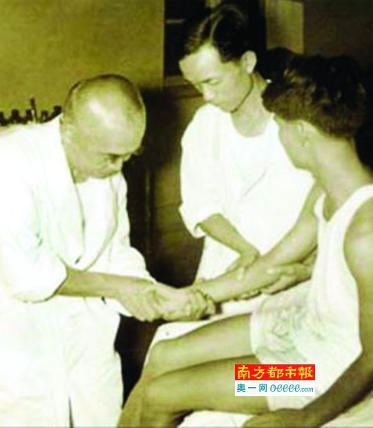 何竹林为学生示范骨科整复手法(1965年)。