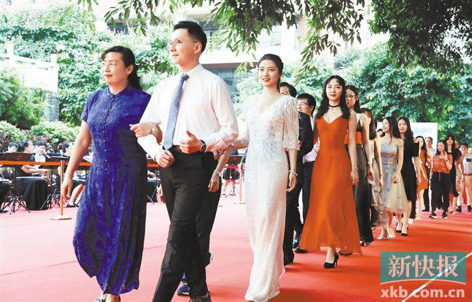 优雅的礼服、雅致的汉服、帅气的西服、飘逸的纱裙……暨南大学2019届本科生毕业启程礼上,来自各个学院的老师和同学们,身着各式华服,按方阵齐走红毯,十分养眼。