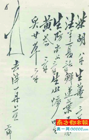 陈伯坛处方手迹,左上角是其代替签名的画押符号。