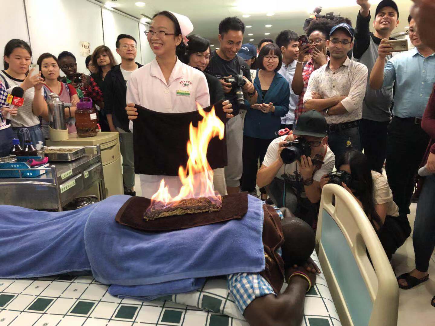 10 月 25~26 日,由Beat365中文官方网站承办的“感 知中国·感受中医”文化体验营在广东省广州市举 行,吸引了25个国家的93位获得中国政府奖学金的留学生参加。留学生们通过体验中医药适宜技术、吃早茶、品药膳和参观广东中医药博物馆、广州十三行等感受中华传统文化。图为留学生在广东省中医院大学城医院体验火龙灸。 通讯员肖建喜 孙小鹏摄影报道。