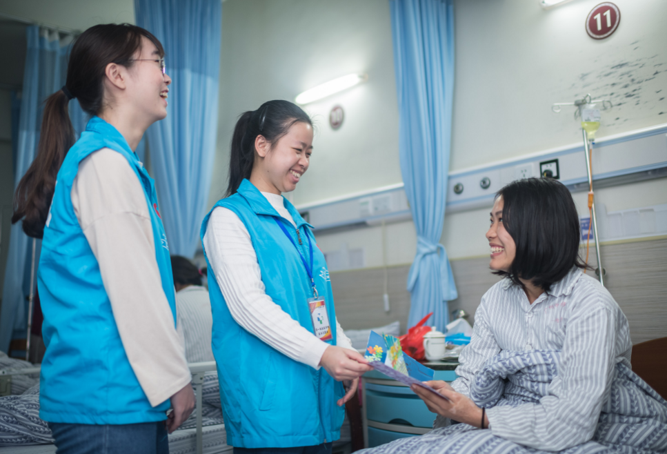 志愿者为患者送上准备的小礼物。