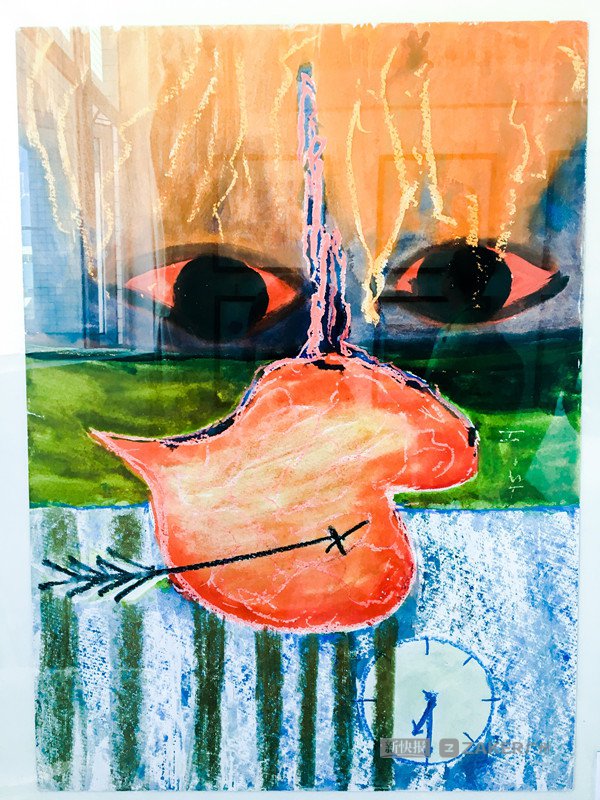画展上,一幅名为《心化》的画作吸引了人们驻足观看。画面中,一支箭穿过了心脏,两个大眼睛正在流着泪。据广东省高校心理健康教育与咨询专业委员会主任邱鸿钟教授介绍,这幅作品的内容象征着作者的心理创伤。他指出," 绘画创作即治疗 ",也就是说,在绘画创作中将自身心理压抑的一面释放出来对精神病患者的治疗是很有帮助的。