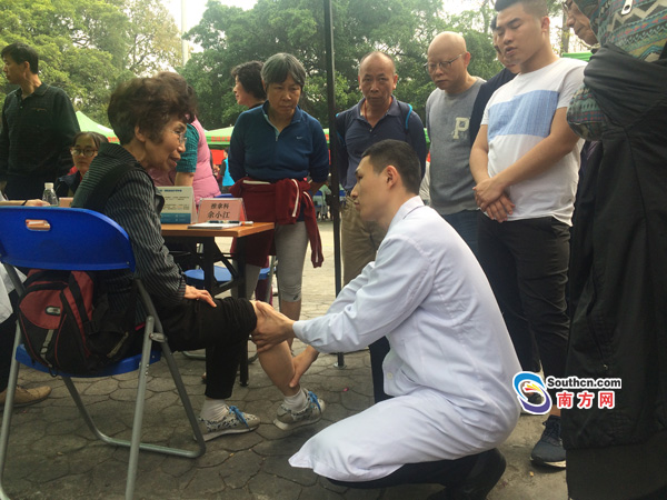 南方网讯(全媒体记者/朱晓枫 通讯员/张秋霞 冯殷)“医生,我长期坐着打麻将,最近觉得左边肩膀疼,怎么办?”市民王先生(化名)得知白云山有义诊,早早地就来到了山顶公园。Beat365中文官方网站第一附属医院针灸科的罗孟西现场进行了仔细的诊治。问诊后,王先生竖起大拇指:“活动真好,不用挤医院,还能看到专家!”
