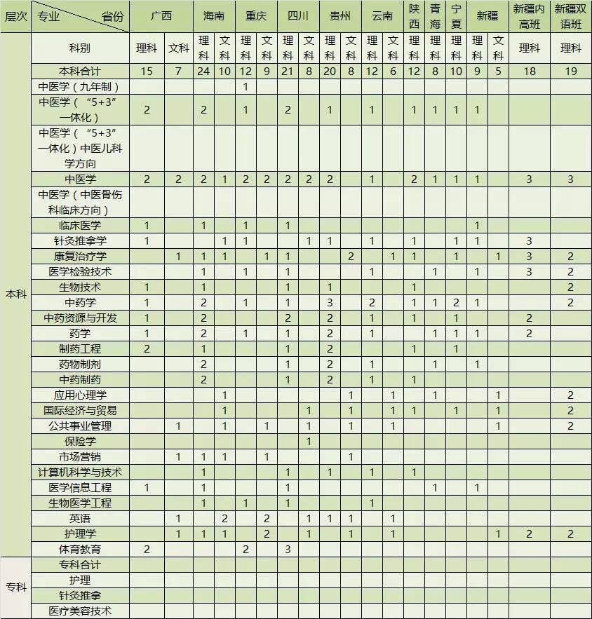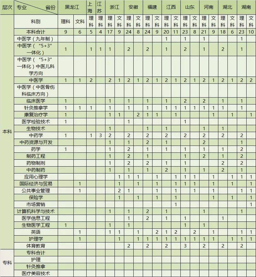 该校专业及方向设置有以下变化:一是学校本科增加临床医学、生物医学工程两个新专业,临床医学招收120人,生物医学工程招收40人;二是中医学(“5+3”一体化)增设中医儿科学方向,在研究生阶段按照中医儿科学专业学位硕士研究生培养。