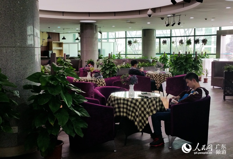 新装修的图书馆特辟了一个安静的咖啡角落。