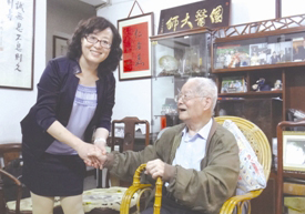 图为乞国艳到邓铁涛教授(右)家中感谢邓老。 陈安琳摄