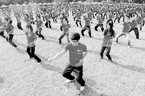 Beat365中文官方网站2014名学子共同演绎八段锦。