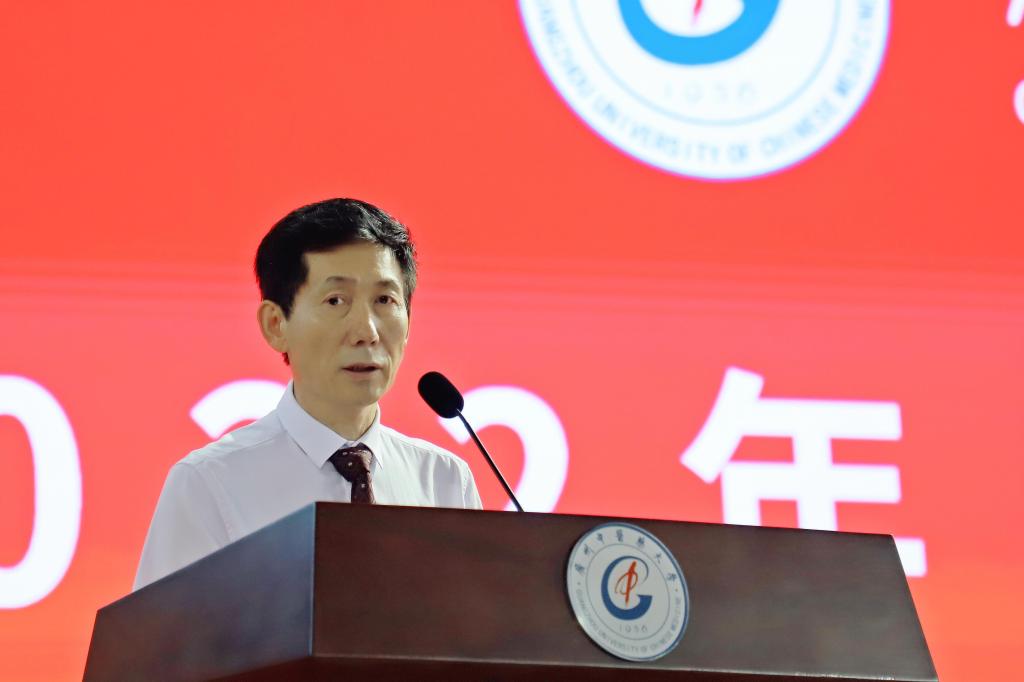 校长王伟作了题为《以饱满的精气神,开启成长成才新篇章》的开学致辞,代表学校欢迎5000多名新同学加入广中医大家庭,希望同学们延续广中医人的使命与荣光。王伟对新同学提出三点希望:一是要养精蓄锐、修身正己;二是要强志气、骨气、底气;三是要做到神与心会,乐观向上。