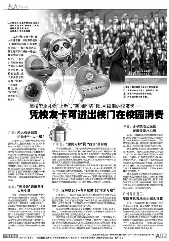 山水一程,终有一别。无人机送惊喜、不过期的校友卡、寓意深远的镜子、定制的学位服……离开校园之际,除了给同学们准备一场盛大难忘的毕业典礼外,广东不少高校也推出了别出心裁的毕业礼物。母校的心意,成了毕业学子的专属“宠爱”。一起来看看这些“仪式感”满满的礼物吧!