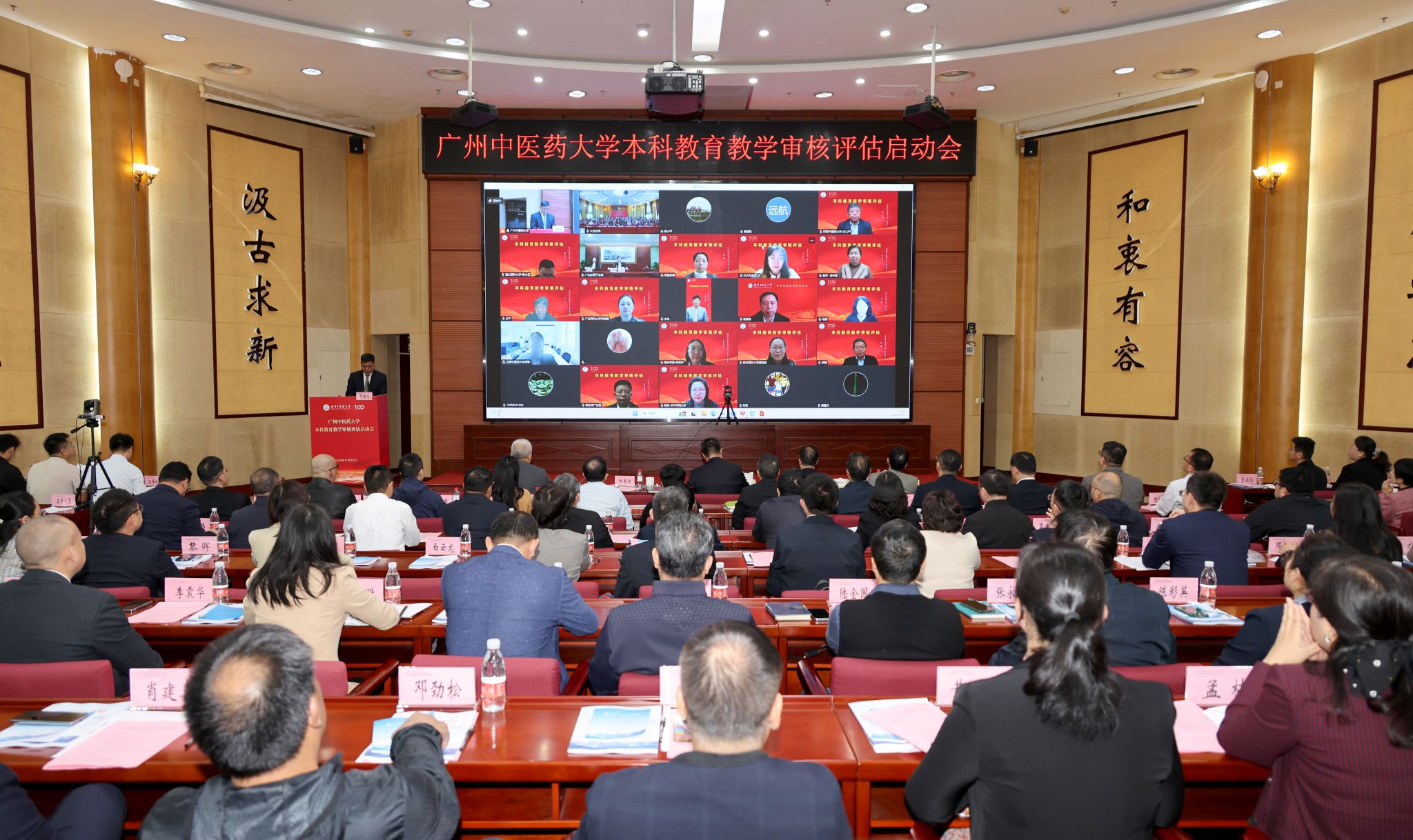 学校领导,校本部全体中层干部,各临床医学院教学副院长,全体专业负责人,审核评估迎评联络员,审核评估联络员,评建办、教务部全体工作人员等170余人线下参加会议。