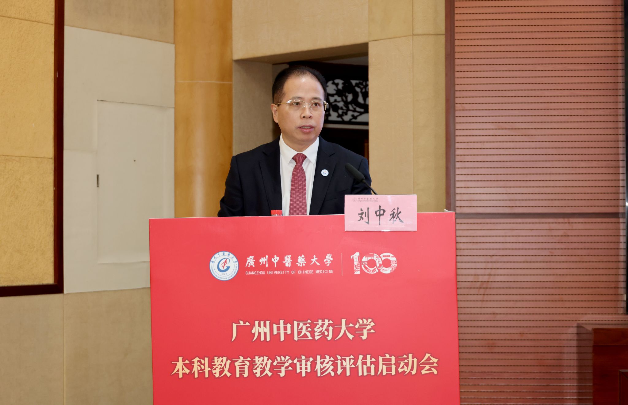 受学校党委副书记、校长王伟的委托,副校长刘中秋以《百年岐黄 逐梦一流 培养德业双修传承创新中医药精英人才》为题,汇报了学校发展和本科教育教学情况。他表示,百年来,学校传承“上医医国,先觉觉民”家国情怀,秉持“厚德博学,精诚济世”的校训精神,筑牢了本科教育核心地位,秉承“人才培养为本,本科教育是根”的指导思想,坚持“融古铸今、继往开来、扎根南粤、放眼寰球”的办学方针,通过“重临床、强临床、用经典、精中医、融西医、研学术、济全球”等举措,形成了“明德精业、医融中西”的本科教育理念。他指出,学校坚决贯彻落实习近平总书记对教育工作的重要指示批示精神,紧紧围绕立德树人根本任务,全面推进教育、科技、人才一体化建设,坚持“人才强校”战略,打造一流师资队伍,为国家培养了中医药专门人才18万人。坚持一流学科引领,实行学科-学位-专业一体化建设,推进学校高质量内涵式发展,以“再造一个新广中医”的决心,着力谋划新百年学校事业高质量发展,加快建设“中国特色、世界水平”的一流大学。