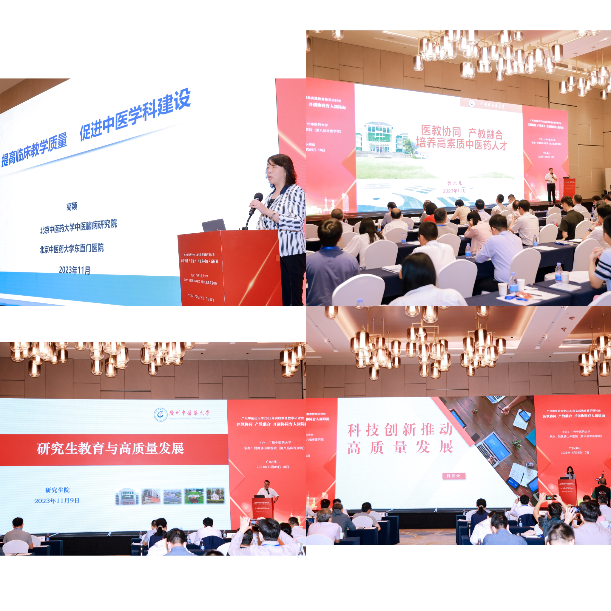 会议邀请了北京中医药大学中医脑病研究院院长、中医药高等教育学会临床教育研究会理事长高颖教授,作题为《提高临床教学质量,促进中医学科建设》的专题讲座。学校教务处处长曾元儿、研究生院院长鄢来均、科技处副处长蔡晓燕分别作了题为《医教协同,产教融合,培养高素质中医药人才》《研究生教育与高质量发展》和《科技创新推动高质量发展》专题报告。