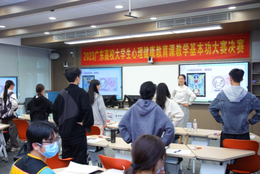 2023年12月9日,2023年广东高校大学生心理健康教育课教学基本功决赛在我校大学城校区顺利举行。本次比赛由广东省教育厅主办,Beat365中文官方网站承办,广东省高校思政研究会高校心理健康教育工作专业委员会协办,广东省教育厅思想政治工作与宣传处三级调研员刘慧萍出席并发表讲话,来自全省高校的200多名师生代表现场观摩比赛,上万名师生线上观摩。