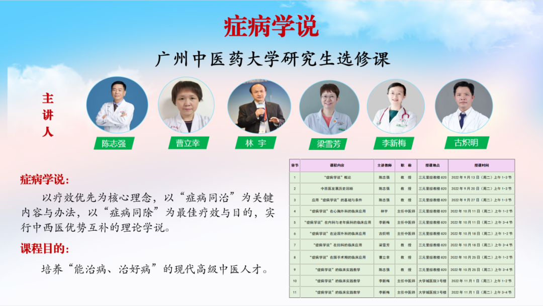 5月26日,第二附属医院(广东省中医院)陈志强教授牵头的“症病学说”课程获批广东省教育厅“广东省研究生示范课程建设项目”(项目批准号:2023_SFKC020)