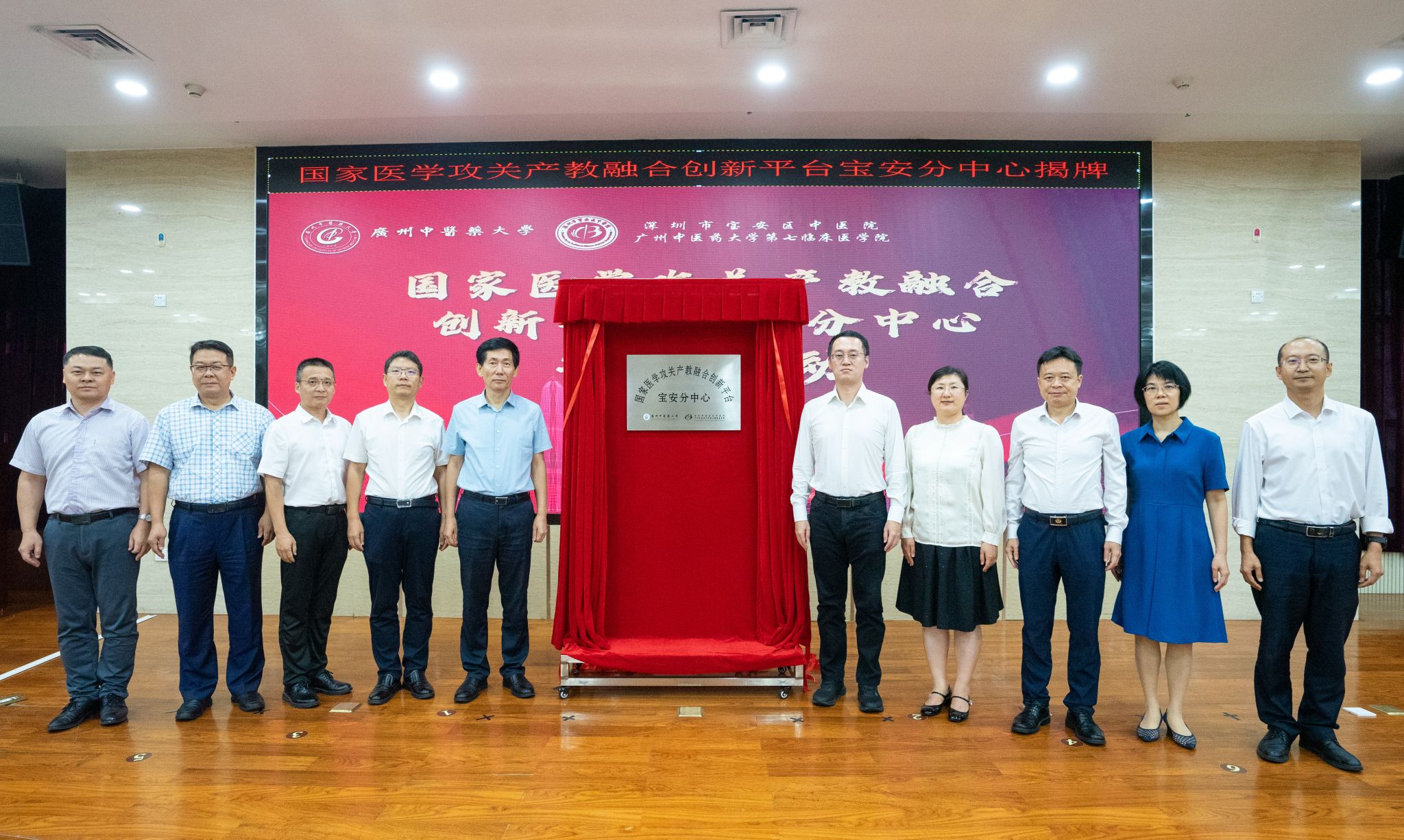 9月23日,国家医学攻关产教融合创新平台宝安分中心落户深圳市宝安中医院(集团),学校党委副书记、校长王伟带队参加揭牌仪式,宝安区人民政府党组成员、副区长李宏涛,深圳市卫生健康委中医处副处长乔诗凝,宝安区卫生健康局党组书记、局长幸思忠及副局长陈桂红出席活动。