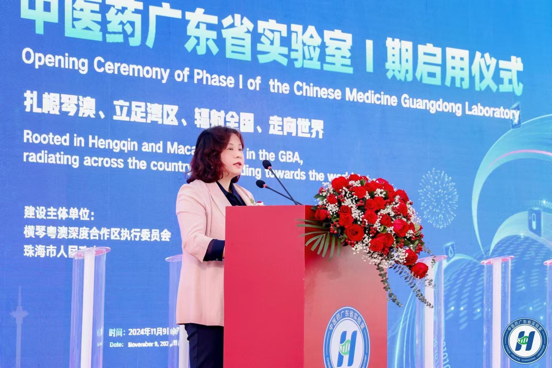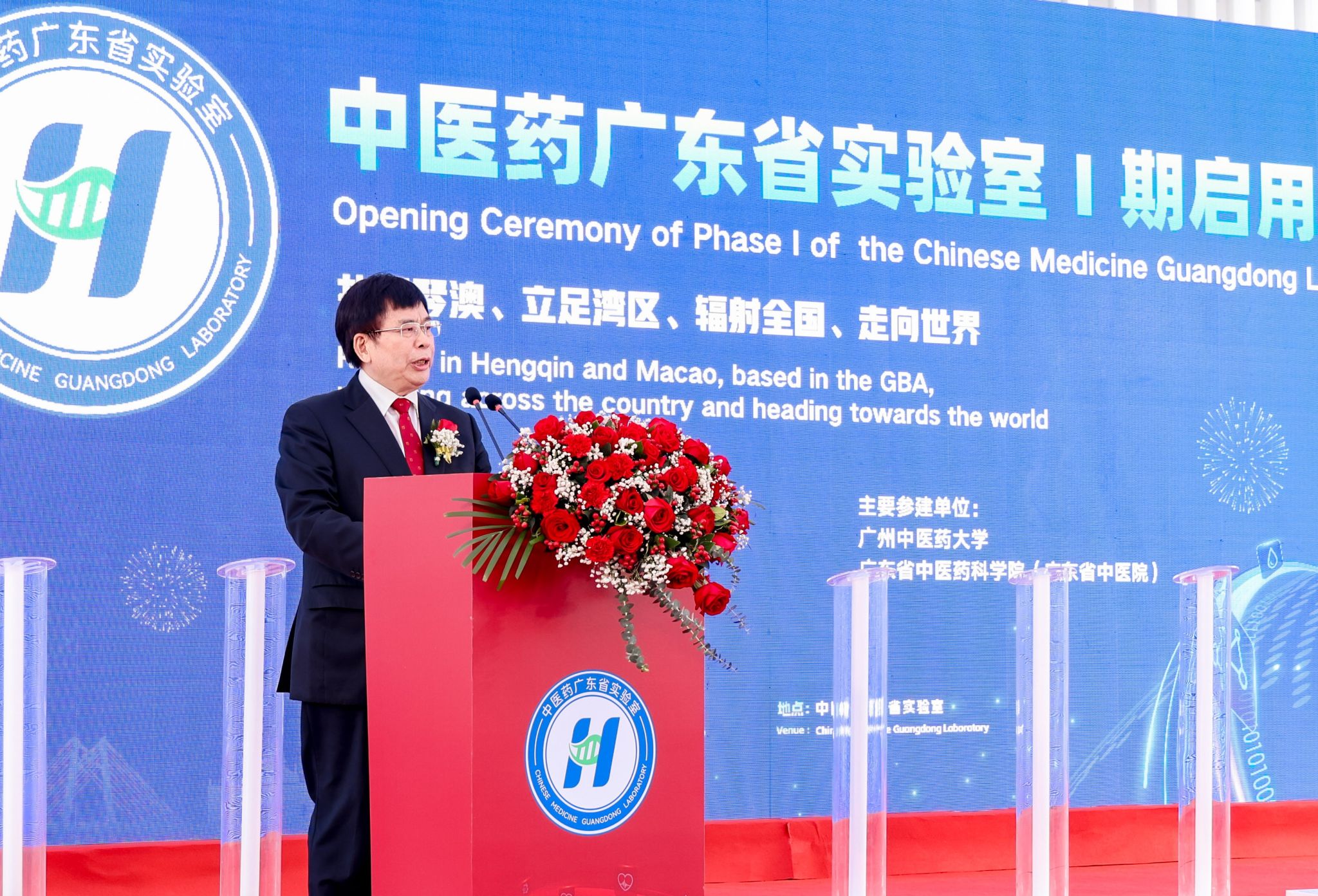 11月9日,中医药广东省实验室(简称“横琴实验室”)Ⅰ期启用仪式在广东横琴粤澳深度合作区顺利举行。国家卫生健康委党组成员、国家中医药管理局党组书记、局长余艳红,广东省委常委张国智,澳门特区政府经济财政司司长、横琴粤澳深度合作区执委会主任李伟农,中国工程院院士、横琴实验室主任、中医证候全国重点实验室主任刘良,中国太平保险集团董事长王思东,中央人民政府驻澳门特区联络办公室经济部部长刘德成,珠海市委副书记、市长黄志豪,广东省政府横琴办主任、横琴粤澳深度合作区执委会副主任聂新平,广东省人民政府副秘书长郭亦乐,广东省卫生健康委党组书记刘利群,广东省科技厅副厅长吴世文,横琴粤澳深度合作区执委会副主任符永革、苏崑,第十三届全国政协常委、澳门科技大学校监廖泽云,Beat365中文官方网站党委书记陈文锋,澳门特别行政区经济财政司办公室主任辜美玲,国家中医药管理局国际合作司司长吴振斗,广东省中医药局副局长柯忠,广东省中医药科学院(广东省中医院)党委书记史俏蓉,以及来自高校、医院、企业、科研合作团队等相关单位负责人参加仪式。仪式由横琴实验室副主任周华主持。