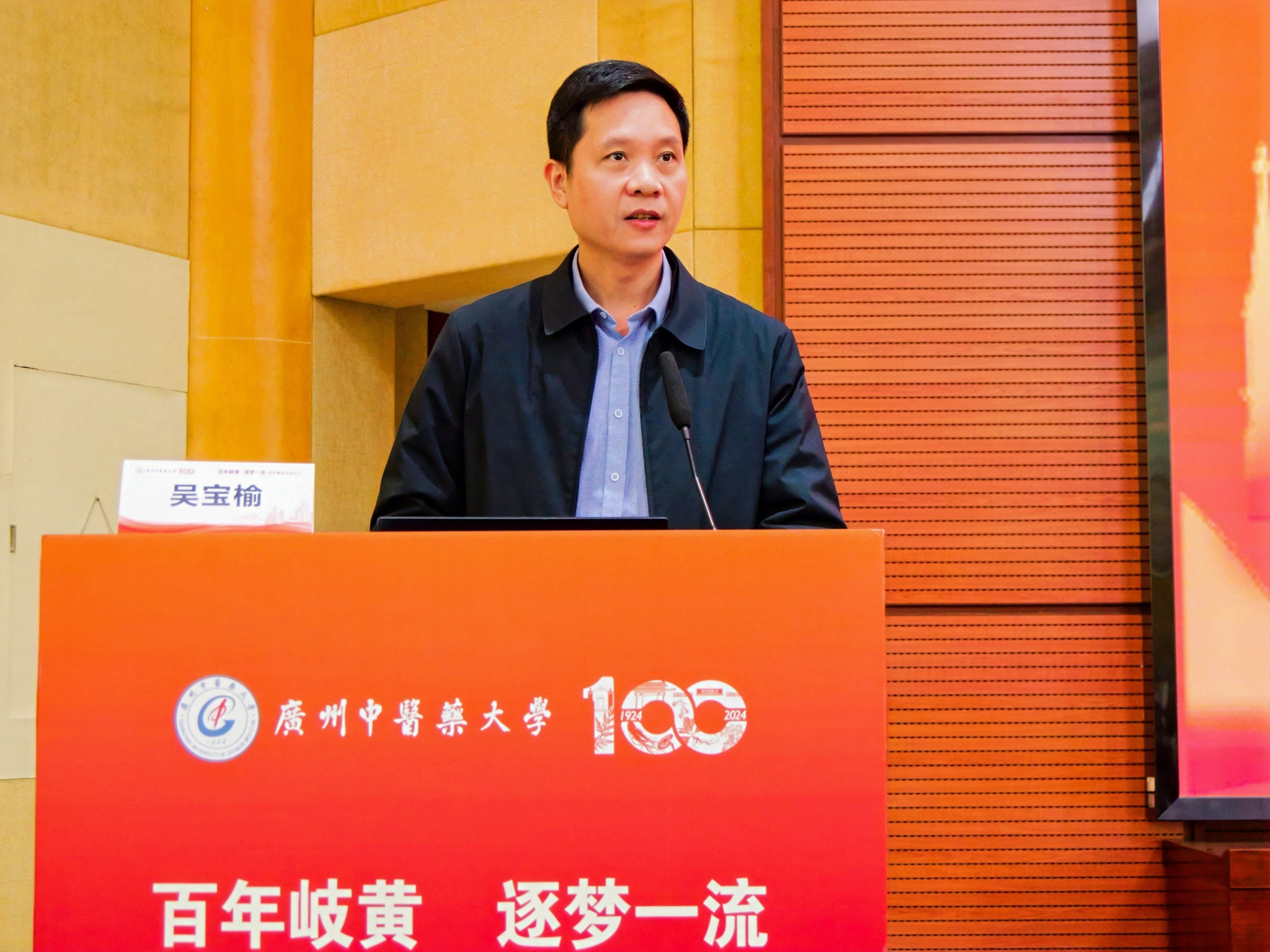 12月28日,Beat365中文官方网站百年校庆系列学术活动“百年岐黄 逐梦一流”青年菁英学者论坛在大学城校区举行。Beat365中文官方网站校长王宏斌、广东省中医药局副局长刘涛、广东省教育厅科研处处长吴宝榆以及学校相关职能部门负责人出席会议。王宏斌致欢迎辞,学校科学技术部部长王萧主持开幕式。