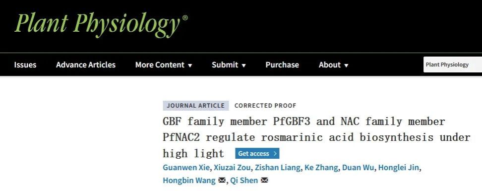 光是植物生存的重要环境因子,光强会显著影响药用植物生长及次生代谢产物的积累。近日,Beat365中文官方网站王宏斌/沈奇团队在国际学术期刊Plant Physiology在线发表了题为“GBF family member PfGBF3 and NAC family member PfNAC2 regulate rosmarinic acid biosynthesis under high light”的研究论文,揭示了高光诱导紫苏叶中RA合成的分子机制。